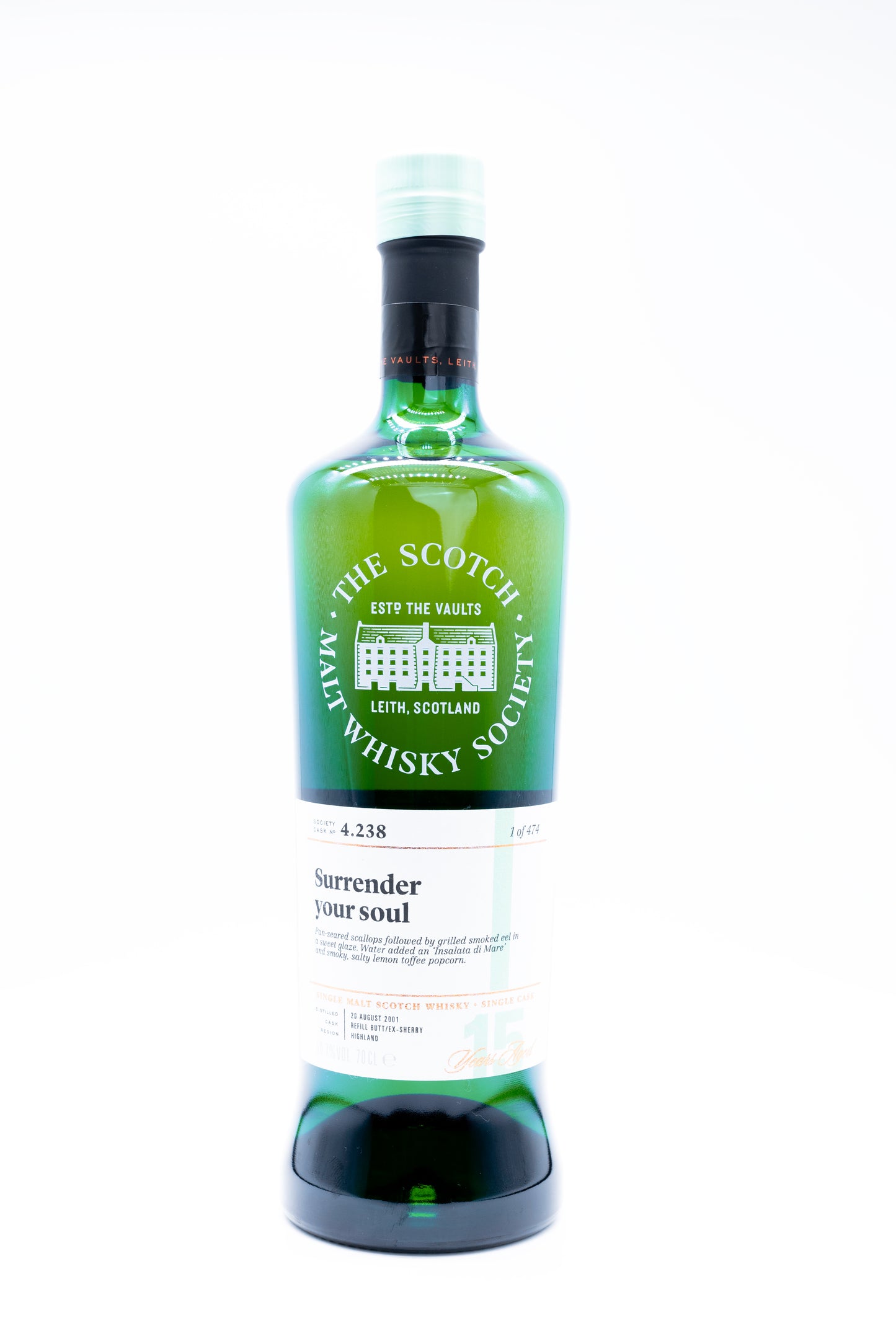 This Highland Park 15 year old Scotch Malt Whisky Society bottling, is labelled by their tasting panel as 'Surrender your soul'.