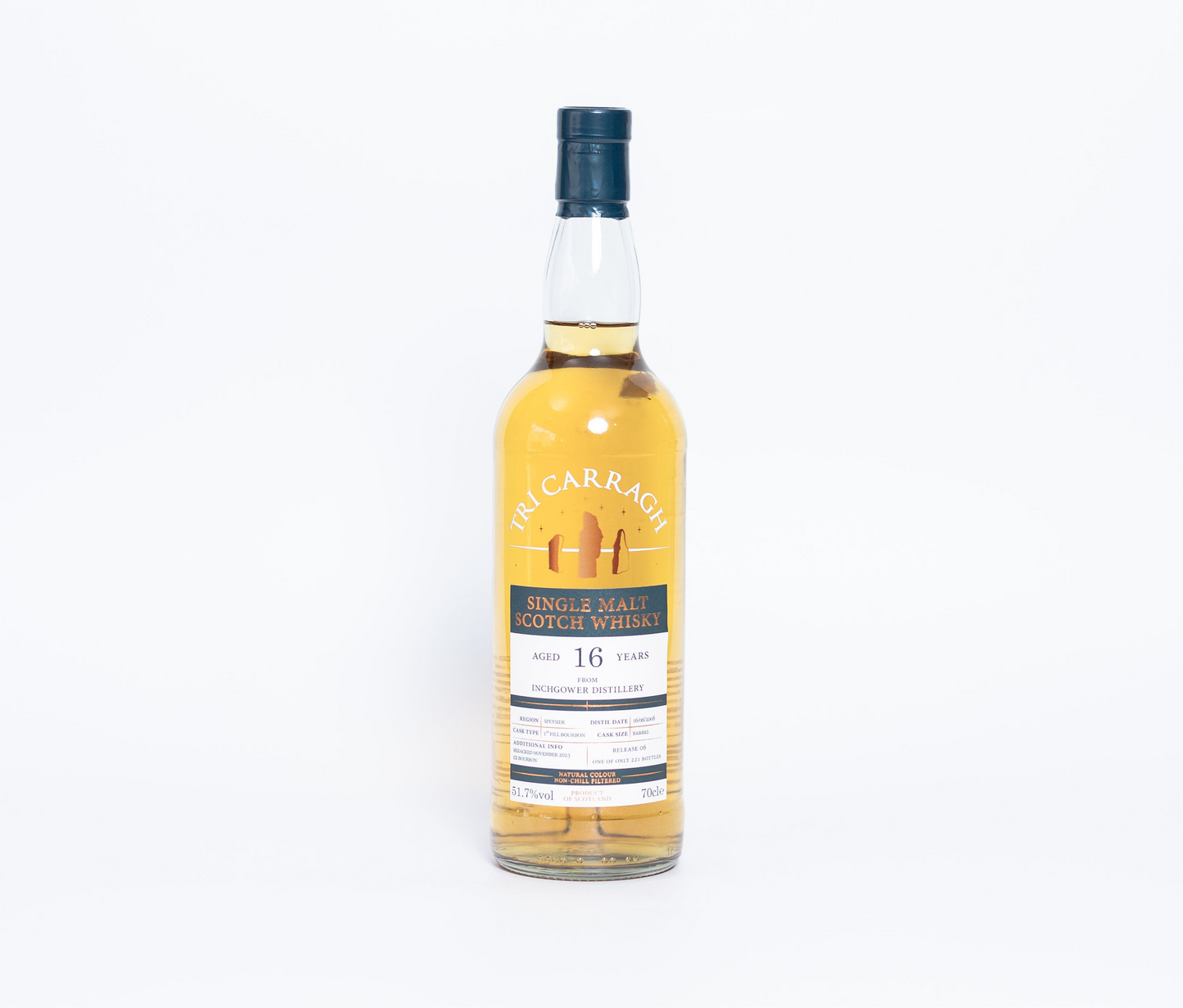Discover the rare and exquisite Tri-Carragh Inchgower 16 Year Old 1st Fill Bourbon Cask. Distilled and bottled in Speyside, this limited release of only 221 bottles offers a smooth and complex flavor profile with 51.7% ABV. Indulge in this one-of-a-kind taste sensation.